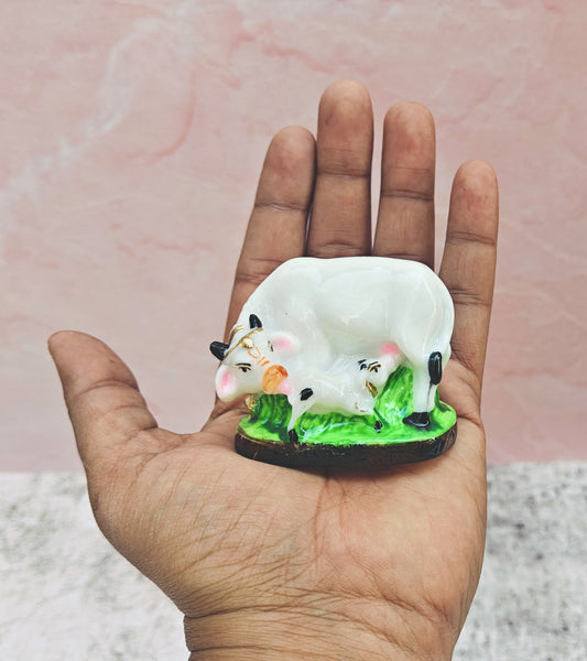 SHINDE EXPORTS cow with calf kamdhenu marble idol white statue for vastu pooja home décor